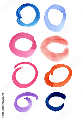 © Marina Yuf, Obraz premium set of bright multi-colored brush strokes watercolor paint on a white background