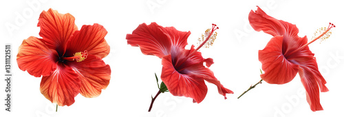 © M, Fototapeta premium set of bright red hibiscus flower isolated in transparent background