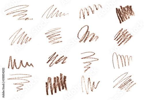 © Fototocam, Obraz premium Set of Brow or eye Liner Pencil Squiggles isolated on white background - Image