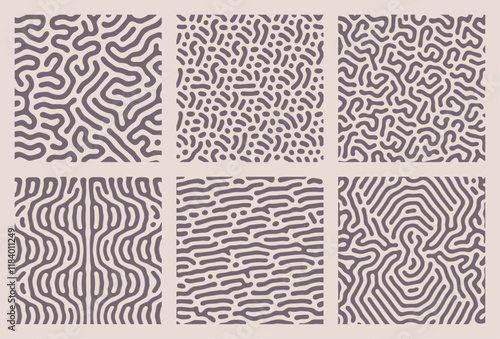 Fototapeta premium set of brown organic turing abstract lines pattern background. pack...