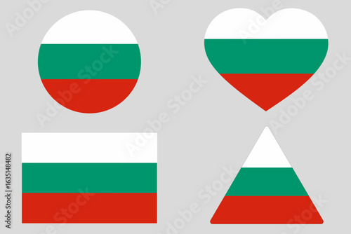Obraz premium Set of Bulgaria national flags in circle, heart, square, and triangle shapes. Official standard colors. Perfect for education, infographics, national day, politics, or cultural identity design.