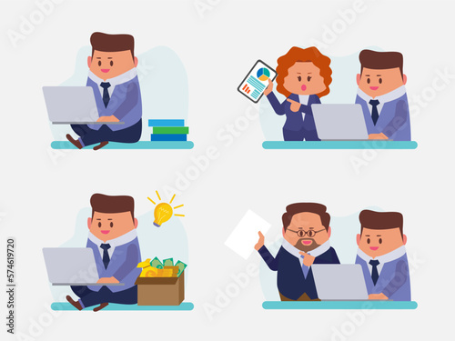 Fototapeta premium Set of Businessperson work at home and teamwork in office