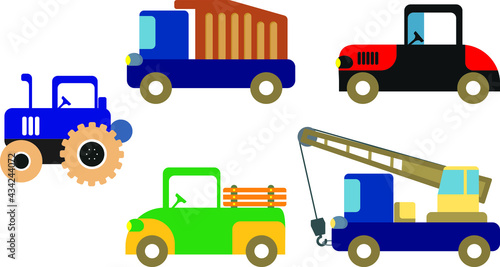 © Anton, Fototapeta premium Set of cars and tractors. Working cars. Drawings for children.
