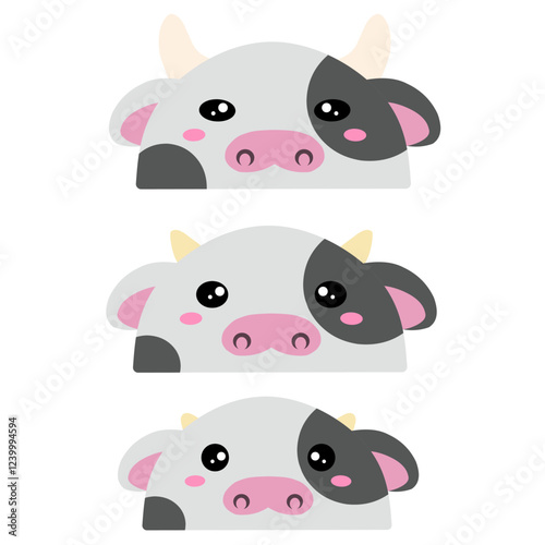 © Mursandi, Fototapeta premium set of cartoon animals. Cow family vector design. Cute design of a group of cows. Set of farm animals. Collection of cute cow face vector cartoon. Cute cow vector design