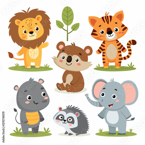 © AbirHasanSelim, Naklejka premium set of cartoon animals set-of-cartoon-cute-animals-including-lion--tiger