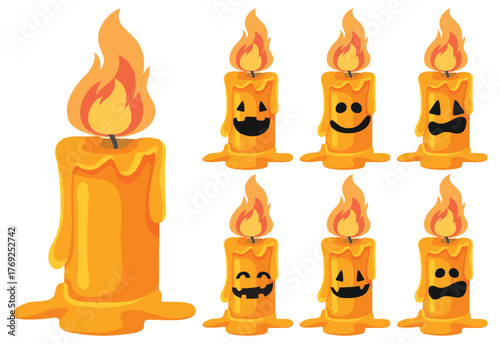 Obraz premium Set of Cartoon Candles With Expressive Faces and Flames