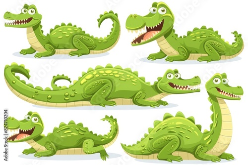 Obraz premium Set of cartoon crocodiles with various facial expressions, ideal for...