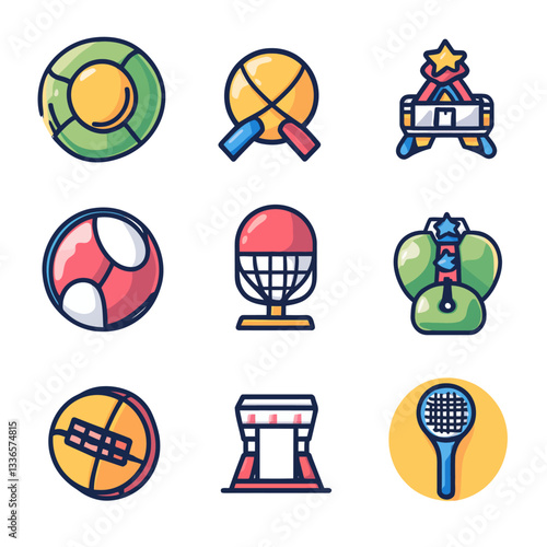 Fototapeta premium Set of Cartoon Sports Equipment Icons: Vector Graphic Illustration