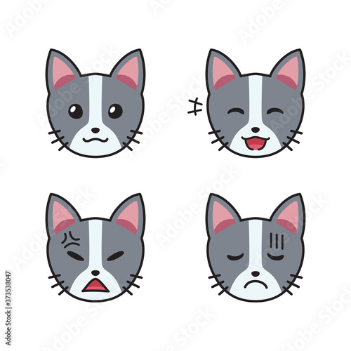 Fototapeta premium Set of cat faces showing different emotions for design.
