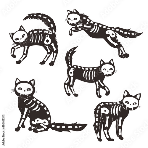 Fototapeta premium Set of cats skeletons isolated on white background. Vector graphics.