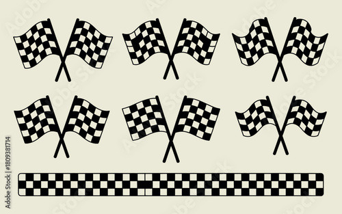 Obraz premium Set of checkered racing flags and border on a neutral background