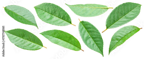 © Екатерина Иванова, Obraz premium Set of cherry leaves isolated on white background. File contains clipping paths.