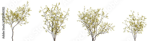 © Viktoria, Fototapeta premium Set of Chimonanthus praecox (also known as wintersweet and Japanese allspice) blossoming trees frontal isolated png on a transparent background perfectly cutout