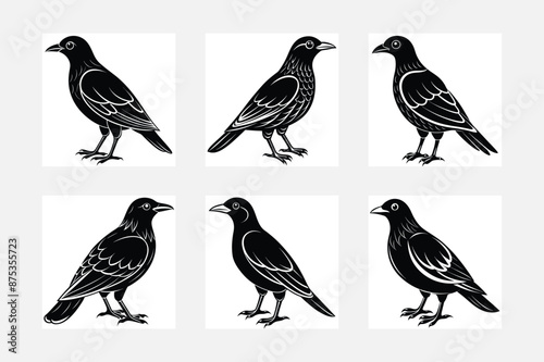 © Bappaditya Roy, Fototapeta premium set of Chough birds vector silhouette