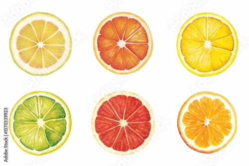 © NadeAnamta, Fototapeta premium Set of citrus fruits slices lemon and lime, cocktail