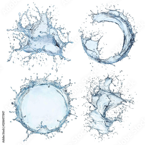 Obraz premium Set of clear water splashes in dynamic motion, isolated on transparent cutout background