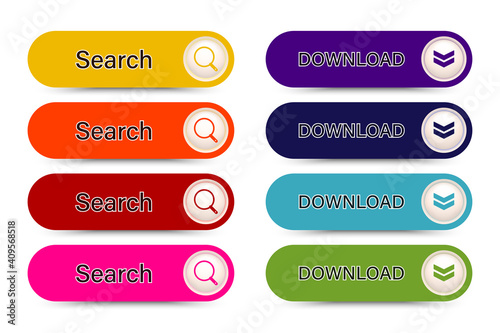 Obraz premium Set of color buttons for web or app, Search, Download