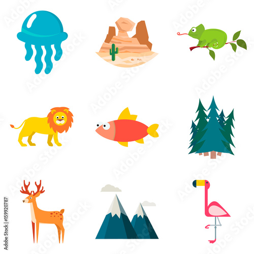 © LynxVector, Naklejka premium Set of color nature flat icons for web and mobile design