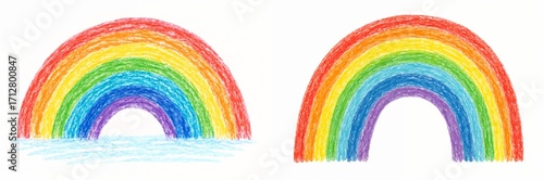 © Natalia, Obraz premium Set of Colored pencil illustrations of rainbows by child aged 8-9 years