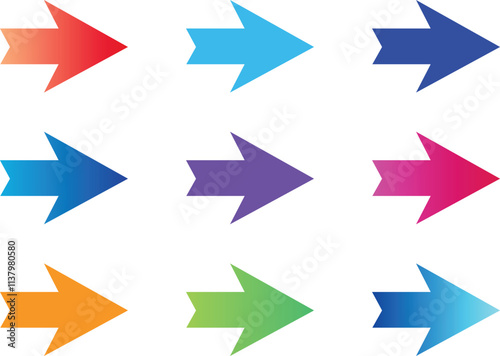 Fototapeta premium Set of Colorful Arrow Icons in Various Directions and Gradients.