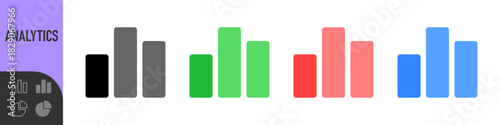© Петро Корженівський, Naklejka premium Set of colorful bar chart icons for analytics, statistics, data visualization and dashboards. Perfect for UI UX, apps, reports, finance, metrics and business infographics