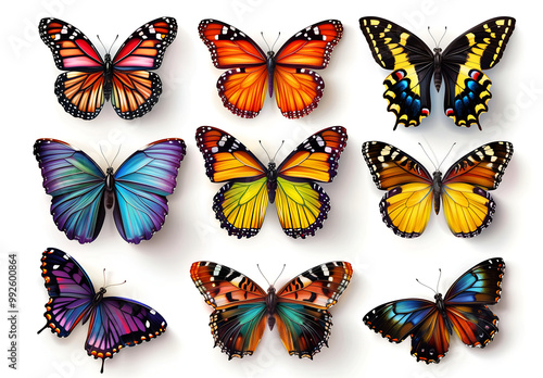 © Anuson, Obraz premium set of colorful butterflies isolated on white