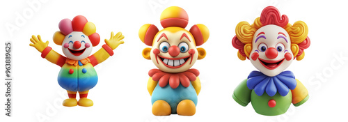 © randy, Fototapeta premium Set of colorful clown characters isolated on transparent background