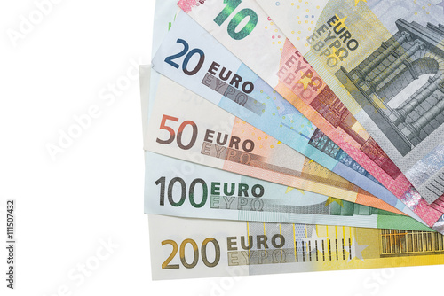 © RomanR, Obraz premium set of colorful euro banknotes isolated on white
