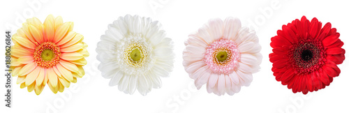 © Nitr, Fototapeta premium set of colorful gerbera flowers isolated on transparent background, top view