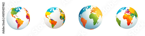 © R Studio, Fototapeta premium Set of Colorful Globe Illustrations on White Background