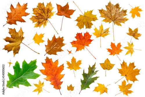 Fototapeta premium Set of colorful maple leaves on white.
