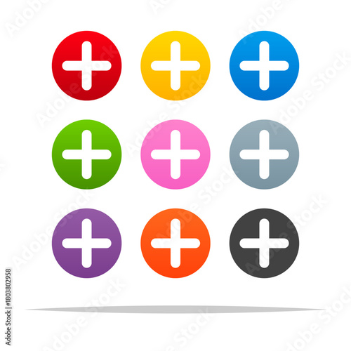 © FARBAI, Fototapeta premium Set of colorful round plus buttons vector isolated illustration