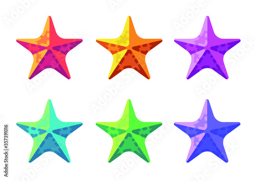 Obraz premium Set of colorful starfish summer flat icons. vector