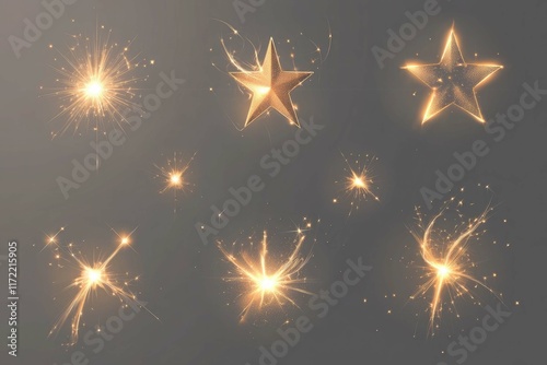 © Zalema, Obraz premium Set of colorful stars on dark background Vector