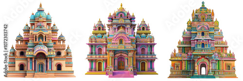 Fototapeta premium Set of Colorful Temple in India architecture building isolated on a transparent background