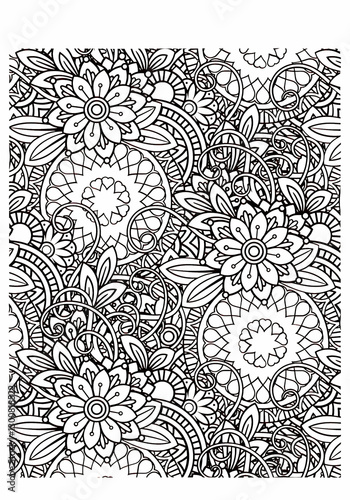 © Grapic Design, Fototapeta premium Set of coloring pages with flowers pattern. May be used for print of postcards, congratulation cards or fabric bags.Hand drawn zentangle floral background for coloring page