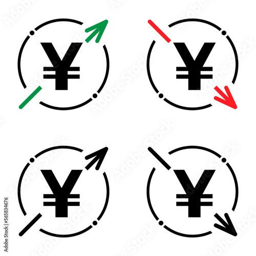 Obraz premium Set of cost symbol yuan increase and decrease icon. Money vector symbol...