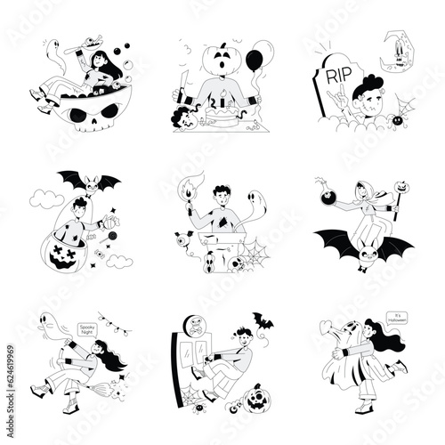 Fototapeta premium Set of Costume Party Hand Drawn Illustrations