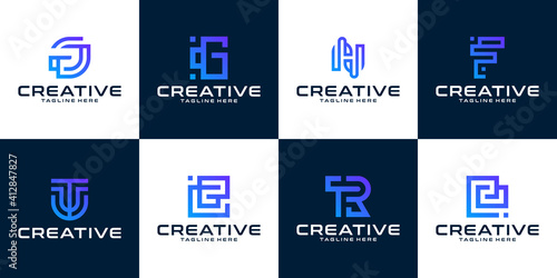 Naklejka premium Set of creative letter monogram logo design collection for consulting, initials, financial companies