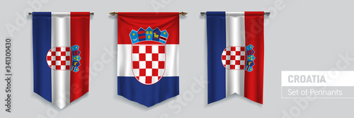 © kora_ra_123, Naklejka premium Set of Croatia waving pennants on isolated background vector illustration