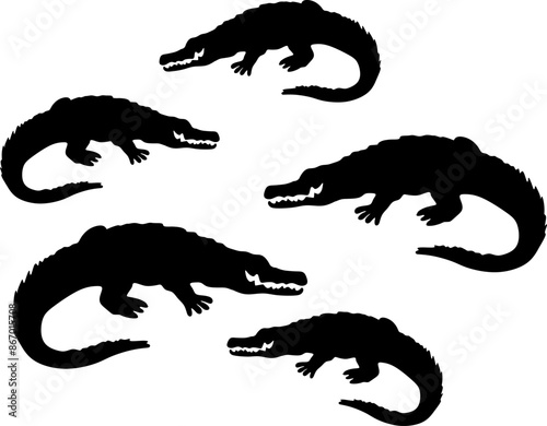 © YOPI, Naklejka premium set of crocodile silhouettes on isolated background, vector illustration
