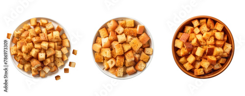 © NT clip art only, Fototapeta premium Set of Croutons bread toast snack cube piece pile isolated on transparent background