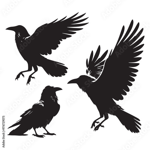 © Shamim Akhtar, Obraz premium Set of crow silhouette vector on a white background
