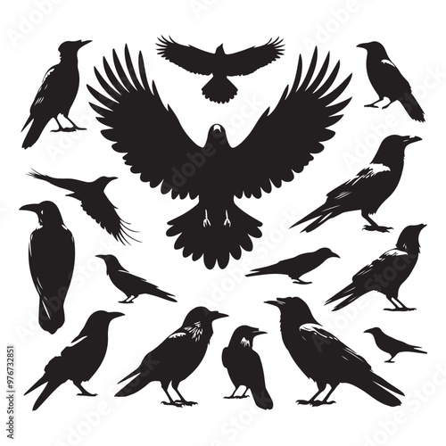 Obraz premium Set of crow silhouette vector on a white background