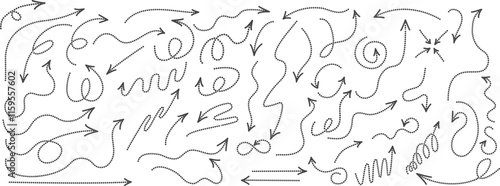 Obraz premium Set of curved arrows with dotted lines. Vector collection of zigzag arrows...