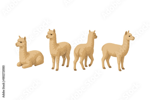 © LOBSTER LARRY, Naklejka premium Set of cute alpacas in various poses on white background