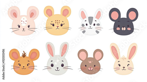 © Nacci, Obraz premium Set of cute animal faces in kawaii style