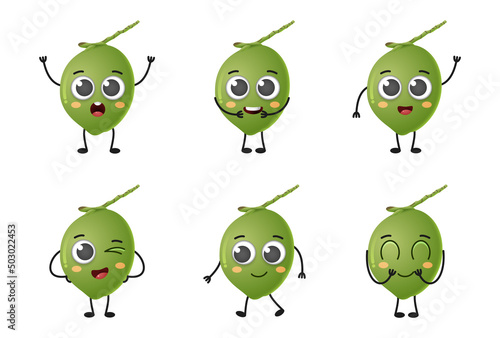 Obraz premium Set of cute cartoon coconut fruit vector character set isolated on white...