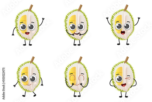 © Sleeping Carbuncle, Obraz premium Set of cute cartoon durian fruit vector character set isolated on white background