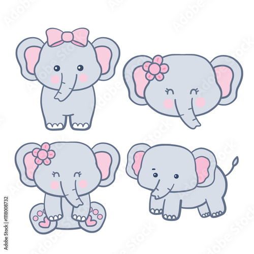 Naklejka premium Set of Cute Cartoon Elephant Illustration .